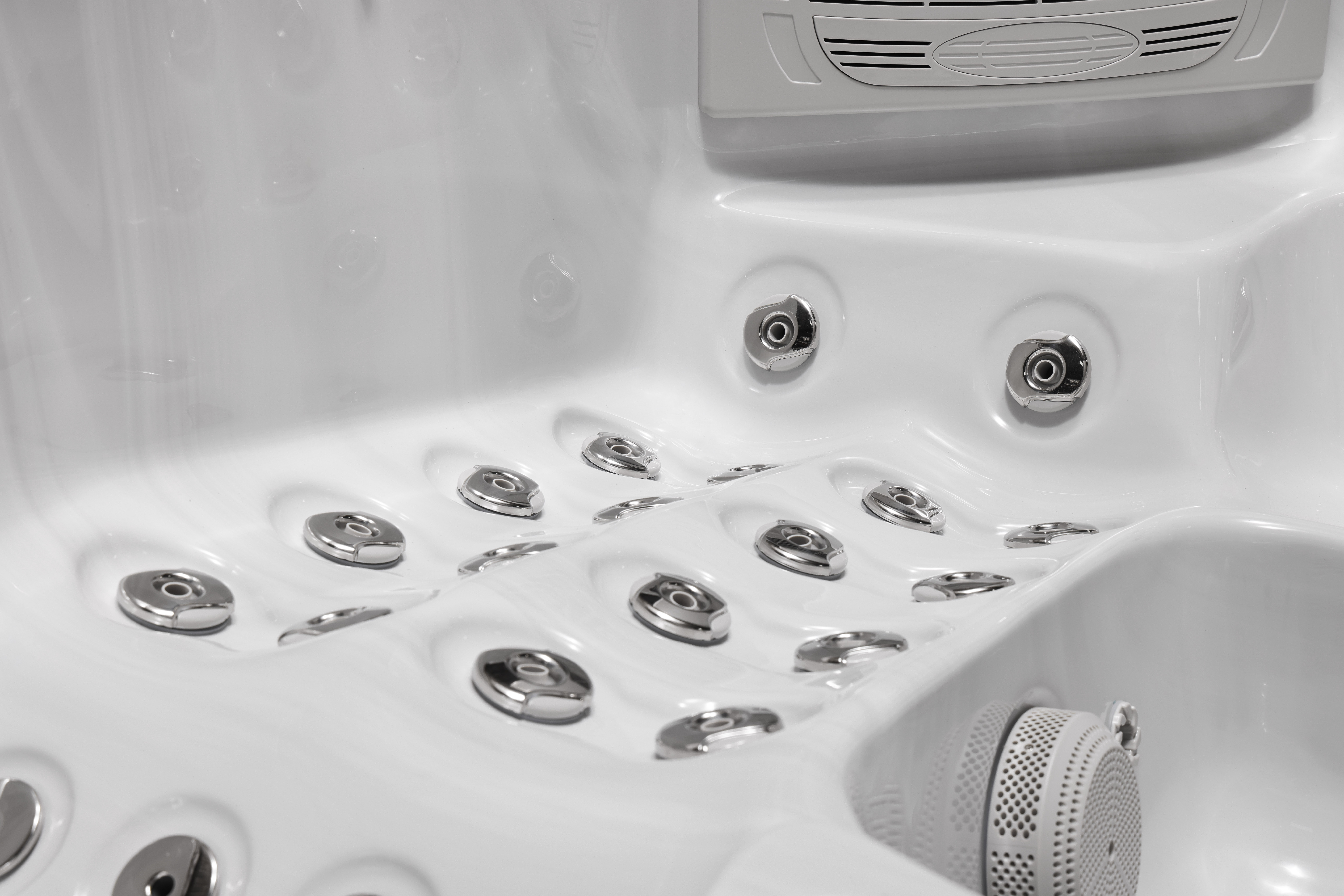 Благодаря мощному нагревателю 3 кВт и двум водяным насосам по 2,2 кВт каждый, Modi обеспечивает интенсивный массаж и быстрый нагрев воды, оставаясь при этом экономичным в эксплуатации.