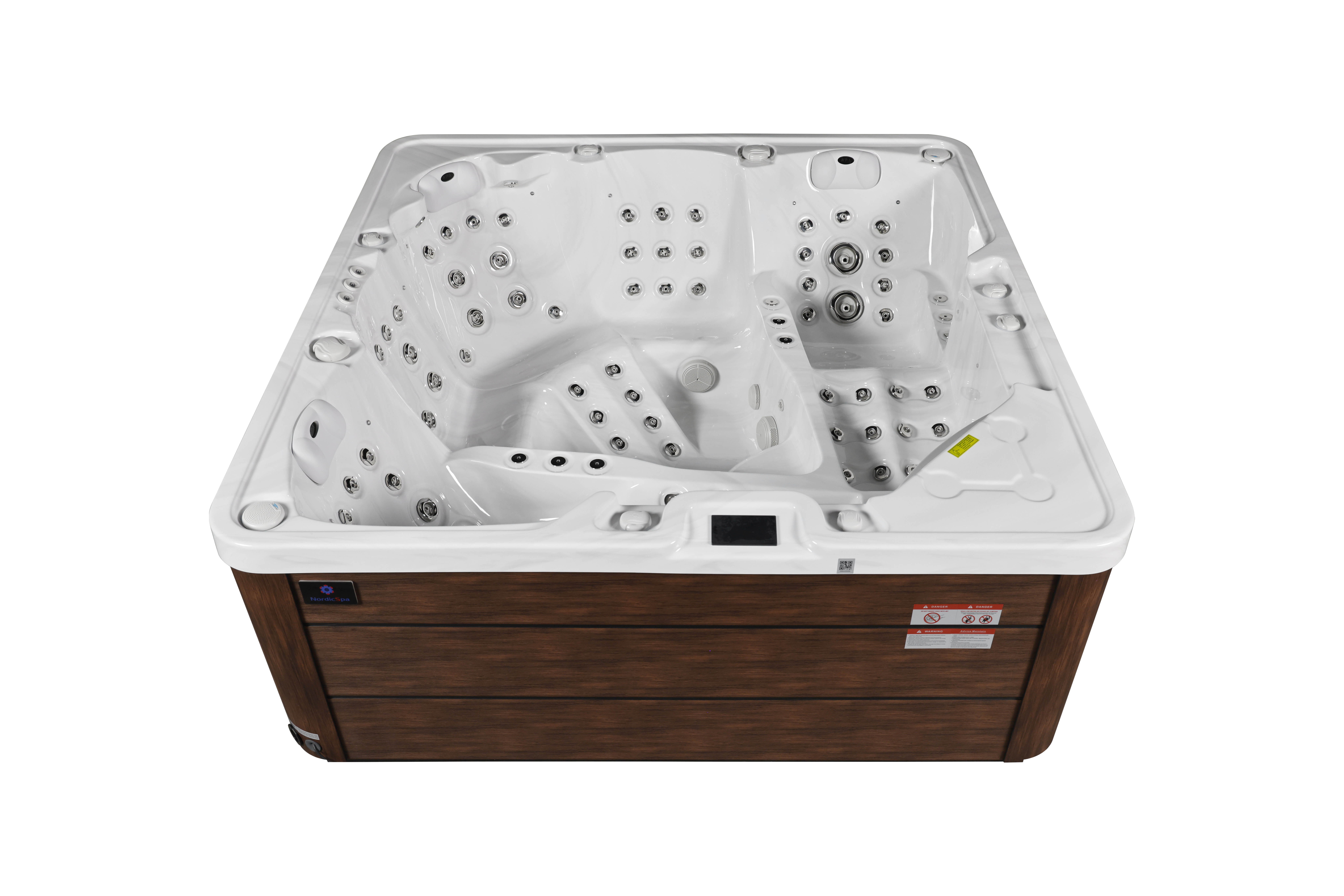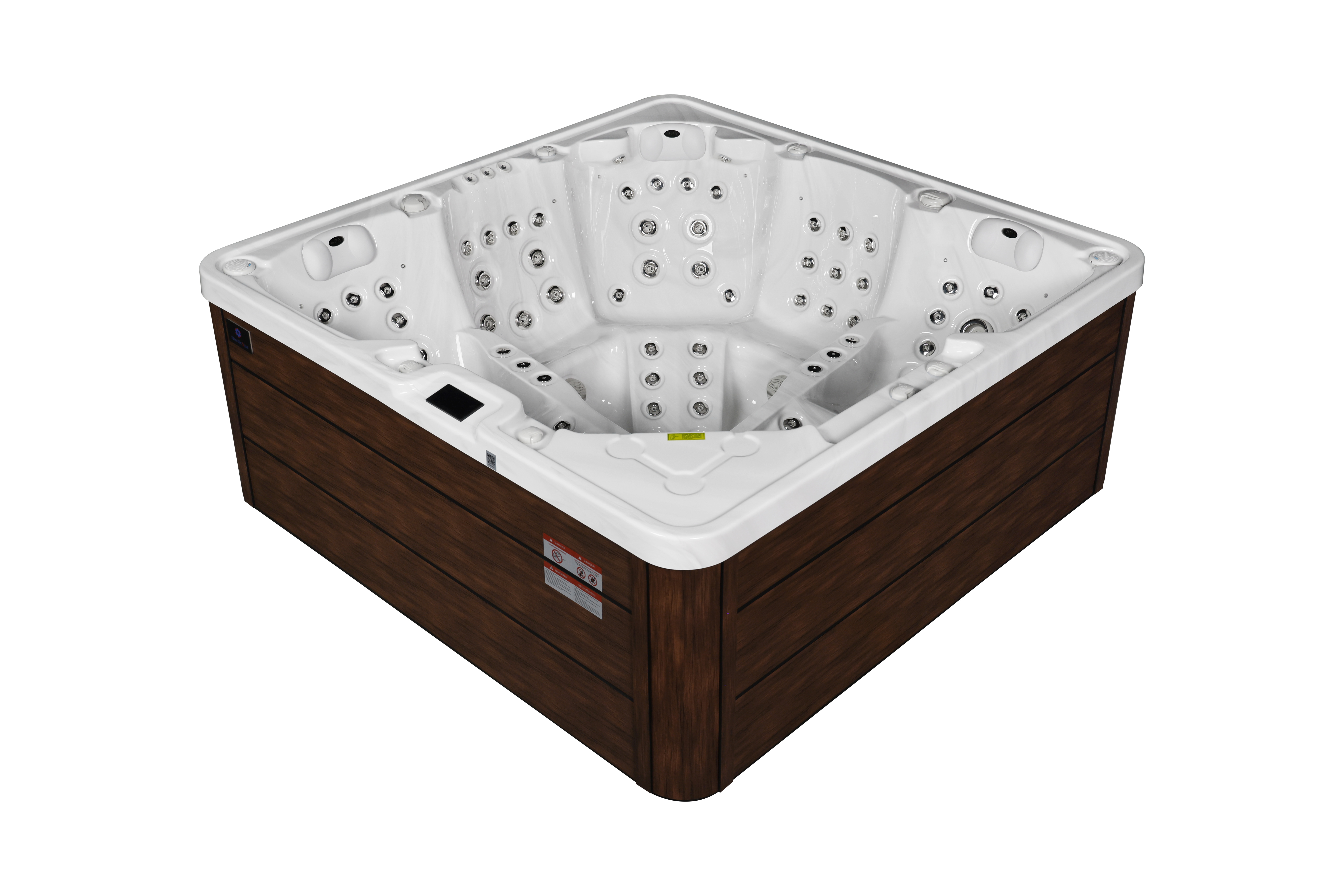 NordicSpa Tyur с размером чаши 2,25 x 2,25 м идеально подходит для установки как в помещении, так и на улице. Просторная квадратная чаша с тремя эргономичными подголовниками комфортно вмещает до пяти человек, создавая королевские условия для полноценного отдыха и общения.